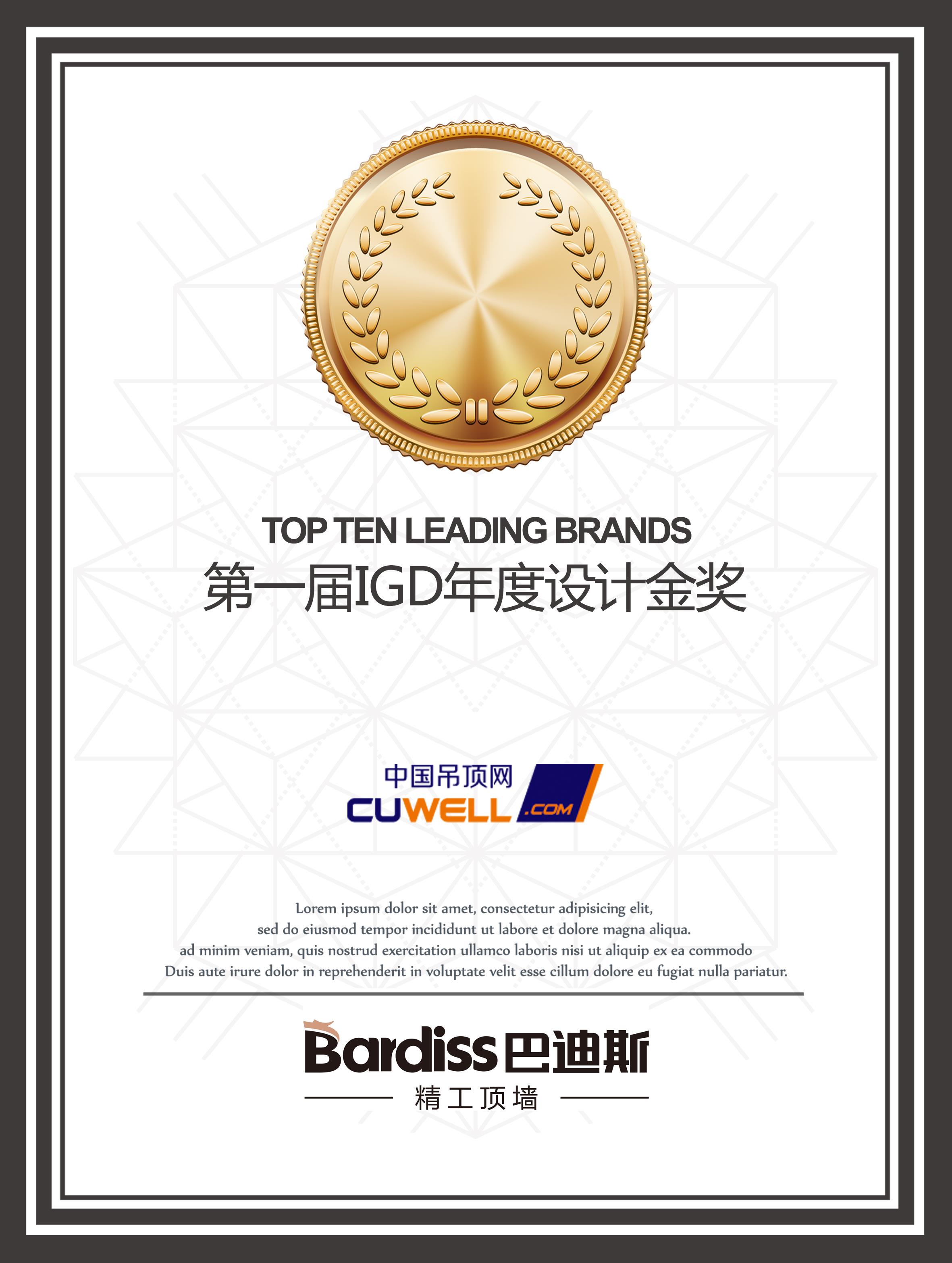已通過ISO9001國際質(zhì)量管理體系、知識產(chǎn)權(quán)管理體系認(rèn)證,先后獲得紅棉中國設(shè)計獎產(chǎn)品設(shè)計獎、集成頂墻行業(yè)誠信品牌、中國頂墻行業(yè)頂天藝術(shù)獎等榮譽。